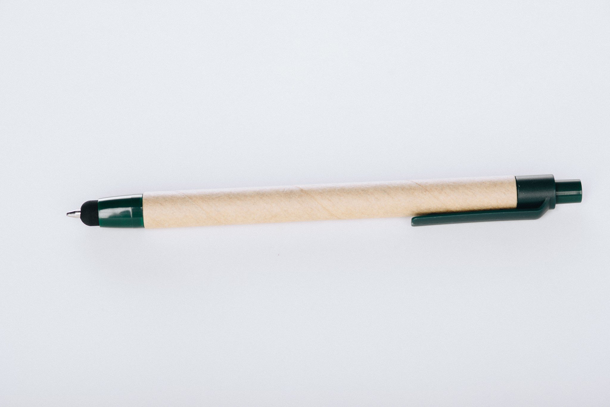 Kuličkové pero vyrobené z recyklovaného papíru a plastu modrou náplňí