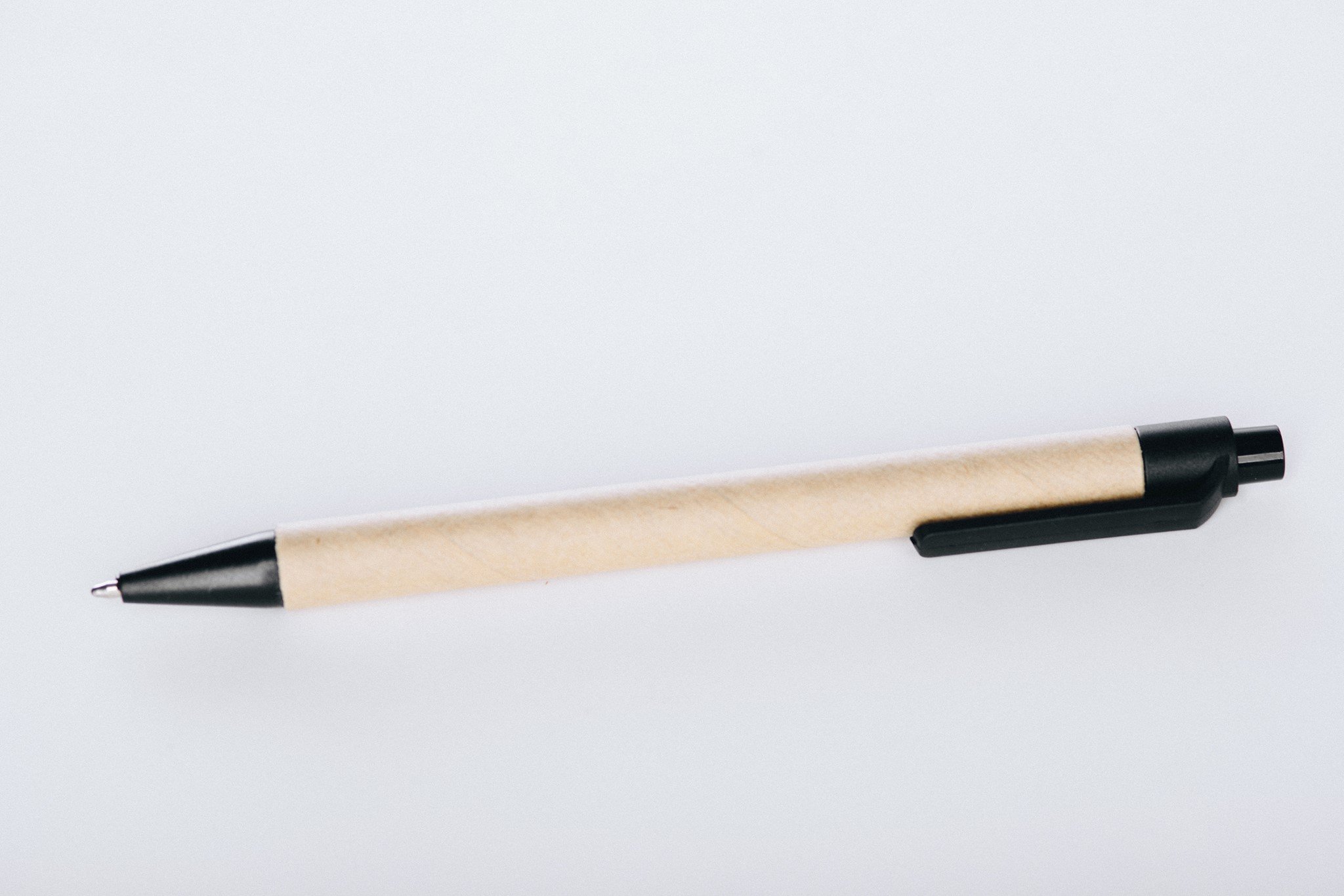 Kuličkové pero vyrobené z recyklovaného papíru a plastu s černou náplní.